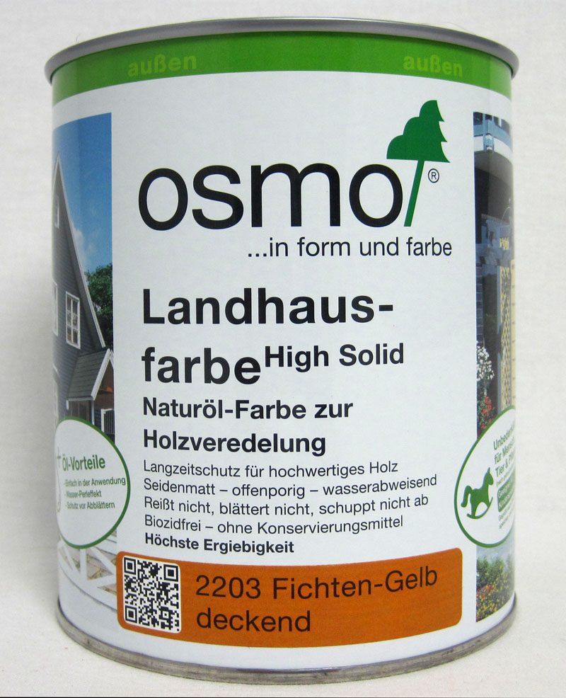 Anwendungsbereiche: Osmo Landhausfarbe ist bestens geeignet für jedes Holz im Außenbereich, wo ein deckender, biozidfreier, besonders dauerhafter, seidenmatter Anstrich gewünscht wird: Holzfassaden, Balkone, Fenster und Fensterläden, Zäune, Pergolen, Holzschindeln, Gartenmöbel und Gartenhäuser, Carports usw. Ideal zur Erneuerung alter offenporiger Anstriche und verwitterter Holzflächen.